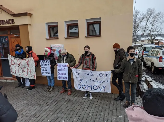 Ve čtvrtek 28. ledna se čtyři desítky lidí sešly před radnicí v severočeském městě Varnsdorf, aby požadovaly urychlené řešení situace několika rodin, které byly vyhozeny na dlažbu už v prosinci 2020. Akci svolala Iniciativa za důstojné bydlení, a kromě její zástupkyně vystoupili na protestu také Iveta Balážová, které společně s manželem a třemi dětmi přišla o loni kvůli městu o bydlení, bývalá veřejná ochránkyně práv Anna Šabatová, nebo aktivista Jozef Miker.