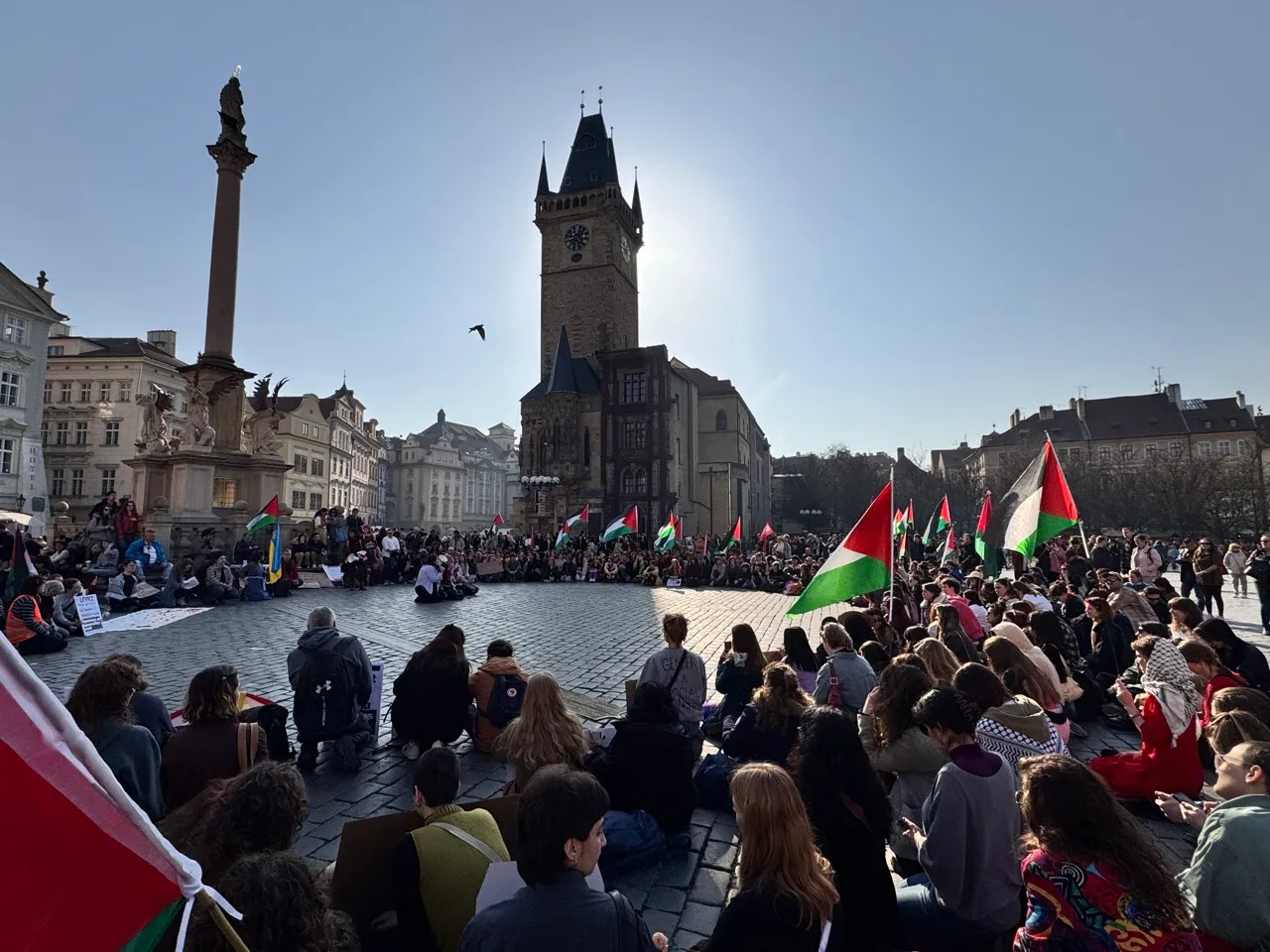 Pochod poté prošel přes Karlův most na Staroměstské náměstí. Jeho účastníci byli velmi různorodí a přehlédnout se nedal ani početný palestinský kontingent. Ten vzbuzoval u některých turistů pohoršení, ale účastníci jim s úsměvem odpovídali.
