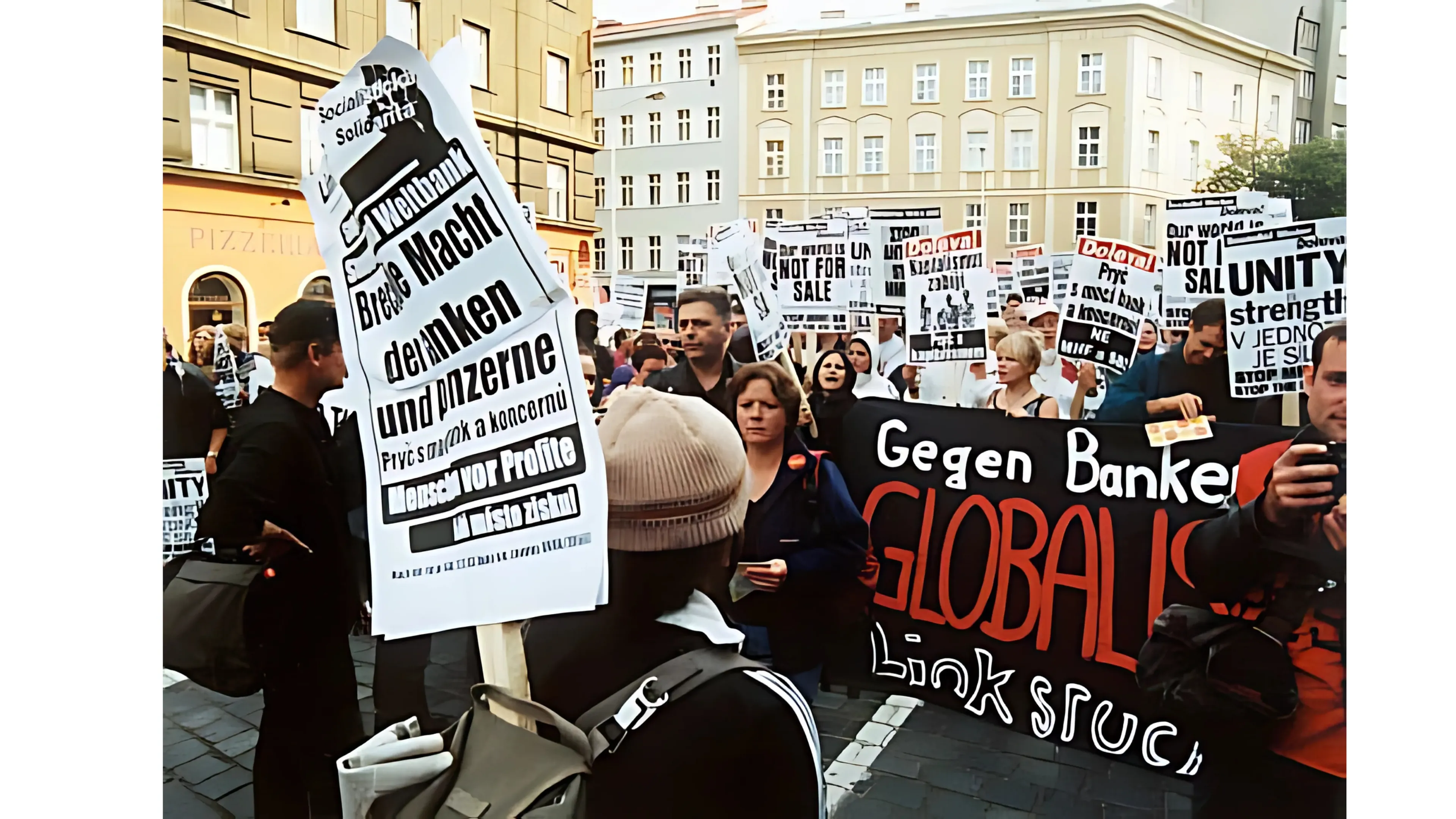 Nejprve ale napíšu, proč se protestovalo. Již v devadesátých letech se i v našich končinách začalo mluvit o globalizaci. Týkalo se to především vztahu nadnárodních koncernů a chudých zemí globálního Jihu, hodně se hovořilo o tématu dluhu. Problém zároveň souvisel s velkými nadnárodními institucemi jako Světová obchodní organizace (WTO), Mezinárodní měnový fond a Světová banka. V zahraničí vznikly organizace jako  Reclaim the Streets a People´s Global Action, které začaly organizovat Global Street Party, akce mladých lidí okupujících ulice a tančících na nich ve světových metropolích v rytmu techna a elektronické hudby – party se pořádaly i v Praze. V roce 1999 pak nastal zlomový bod – v severoamerickém Seattlu protestovaly proti zasedání Světové obchodní organizace tisíce lidí v ulicích. Demonstrace se staly slavné především pro svou šíři – příznačné  bylo propojení ekologů (Turtles) a odborářů (Teamsters). Tyto protesty symbolizují vznik světového alterglobalizačního hnutí. V roce 2000 pak vychází kniha Bez loga od Naomi Kleinové, kterou lze považovat za jakýsi manifest alterglobalizačního hnutí (publikace vychází v roce 2005 také v češtině).